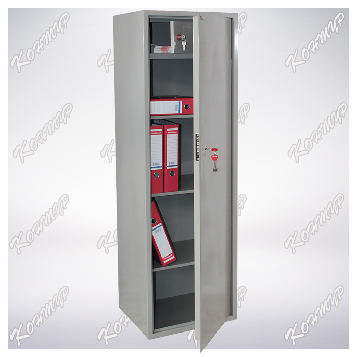 Шкаф представляет собой сварную металлическую конструкцию прямоугольной формы. Корпус и дверь шкафа изготовлены из стального листа толщиной 1,2 мм. Дверь изнутри усилена панелью коробчатого сечения из стального листа толщиной 0,8 мм. В двери шкафа установлен врезной 6-ти сувальдный замок фирмы «Бордер» (пр-во Россия). В комплекте – 2 ключа.