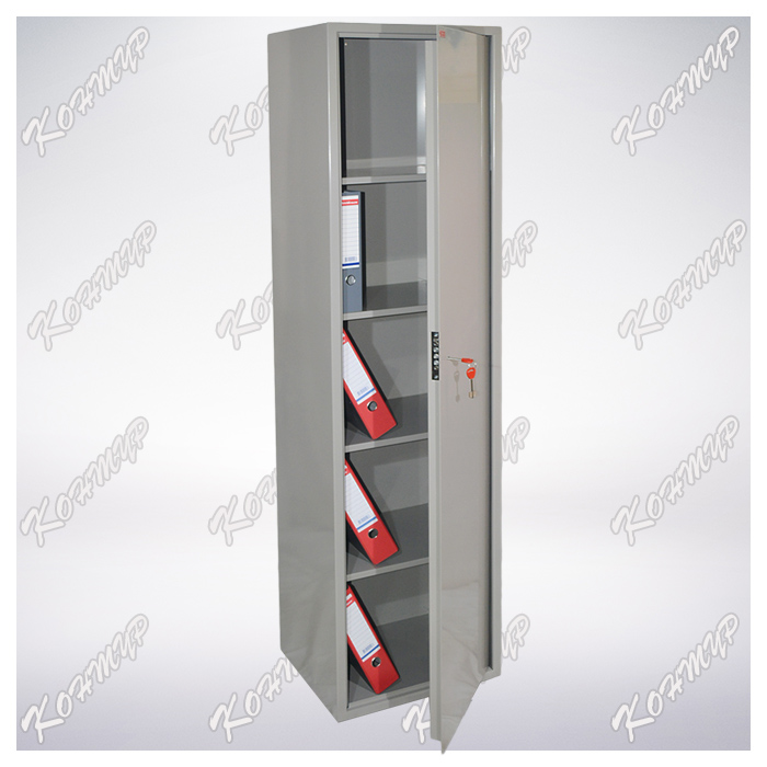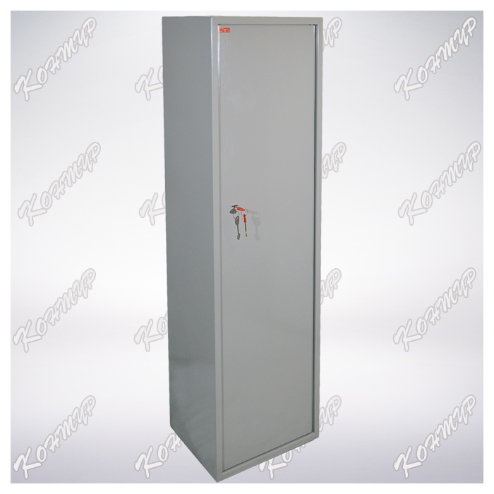 Шкаф представляет собой сварную металлическую конструкцию прямоугольной формы. Корпус и дверь шкафа изготовлены из стального листа толщиной 1,2 мм. Дверь изнутри усилена панелью коробчатого сечения из стального листа толщиной 0,8 мм. В двери шкафа установлен врезной 6-ти сувальдный замок фирмы «Бордер» (пр-во Россия). В комплекте – 2 ключа.