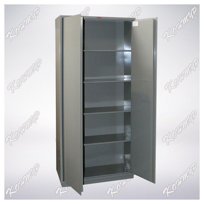 Шкаф предназначен для хранения бухгалтерской, технической и другой документации и представляет собой сварную металлическую конструкцию прямоугольной формы, разделенную 4-мя несъемными полками на 5 равнозначных отсеков (расстояние между полками 330 мм). Глубина шкафа, расстояние между полками, угол открывания двери подобраны для удобной работы с папками формата А4 или «Корона». Шкаф имеет подиум (подставку) высотой 47 мм для возможности размещения его вплотную к стене.