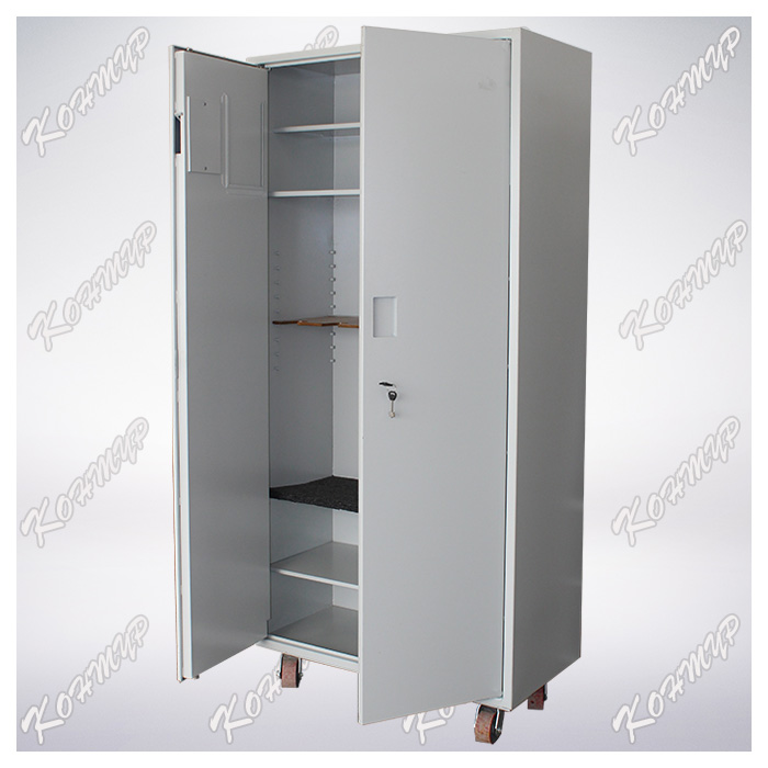 Шкаф металлический для хранения коллективного оружия (далее по тексту – шкаф) представляет собой металлическую сварную конструкцию, выполненную из стали марки 0.8пс толщиной 2 мм. Шкаф для его перемещения оборудован поворотными колесами.