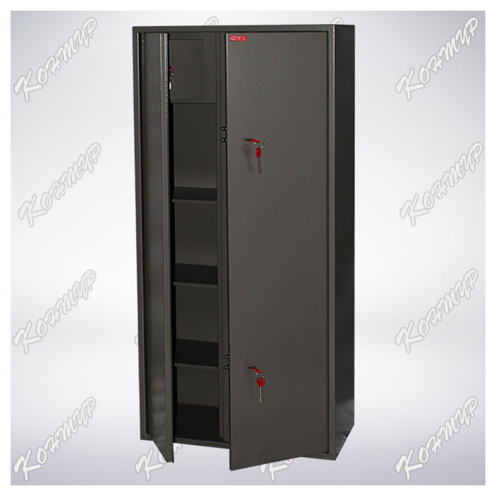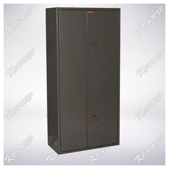 Шкаф представляет собой цельнометаллическую сваренную конструкцию. Корпус шкафа изготовлен из стального листа толщиной 1,2 мм, полотно двери 1,2 мм. Двери запираются на два 6-сувальдных замка «Просам» с классом устойчивости 2 по ГОСТ 5089-2003 (производство Россия).