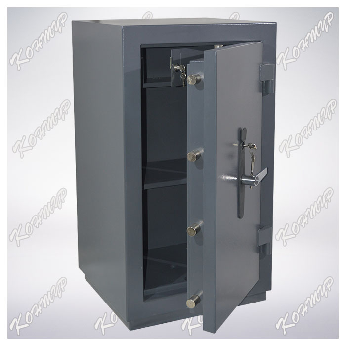 Сейф взломостойкий. Корпус сейфа изготовлен из цельнометаллических сваренных корпусов (внешний и внутренний) с наполнением. Пространство между корпусами заполнено специальным наполнителем, обеспечивающим надежность и прочность конструкции. Система запирания двери имеет 6 активных и один пассивный ригель со стороны петель. Сейф оборудован высококачественным запорным механизмом, который блокируется замком сувальдного типа (производство Германия), что обеспечивает необходимую для третьего класса надежность от взлома. Внутри сейфа имеется отсек ограниченного доступа — трейзер (внутренний ящик с замком почтового типа) и 1 полка. Предусмотрена возможность анкерного крепления к полу. Окраска полимерное покрытие.