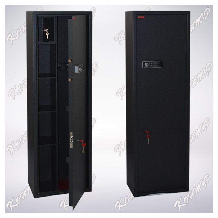 Благодаря двум съемным вертикальным перегородкам шкаф можно разделить на 2 или 3 отделения. Если внутри шкафа перегородки установить вплотную к боковинам шкафа, то возможно хранение максимального количества оружия в зависимости от модели шкафа.